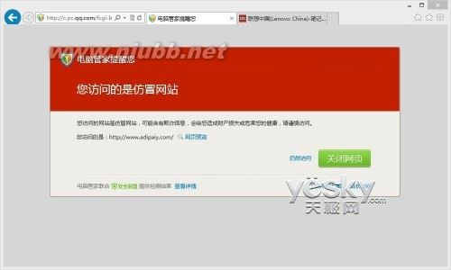 图示:腾讯电脑管家8.0成功拦截高危网站