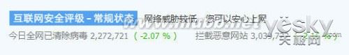 蓝色对应常规状态,表示无明显异常,且病毒、恶意网站数量控制在一定范围内。保持良好的上网习惯可以安心上网。