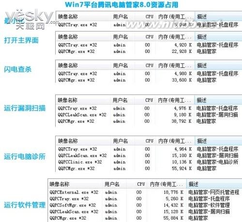 图示:Win7平台腾讯电脑管家8.0资源占用