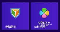 图示:Win8开始屏幕中的电脑管家和软件管理磁贴