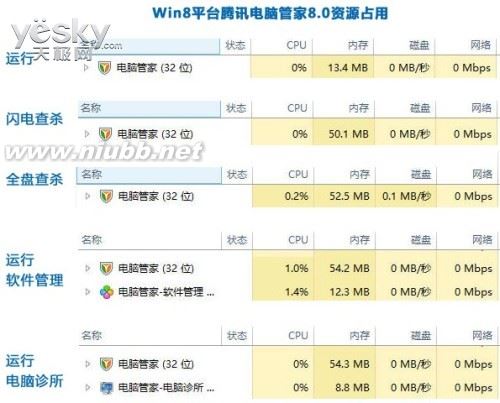 图示:Win8平台腾讯电脑管家8.0资源占用