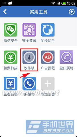 1)打开腾讯手机管家软件,在软件界面点击右上角的“图标”,点击软件锁。