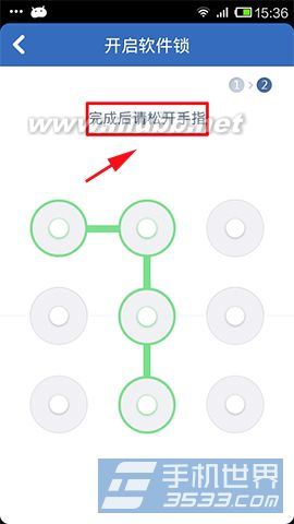 3)再次重复输入刚才的图案密码,出现设置密码成功,即可点击添加你要锁住的软件了。