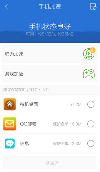 当手机卡、慢时,手机加速是必须的,通过测试,百度手机卫士依然注重结果,告诉你加速后对手机的效果,同时默认了一些后台运行程序,需要进一步操作;在腾讯手机管家这边,也差不多,不过后台运行的程序直接显示出来,可选加速。