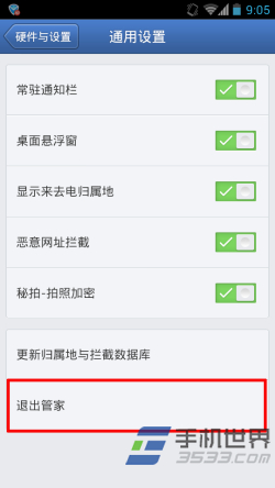3)接着在“通用设置”界面的最下面点击“退出管家”。(如下图所示)