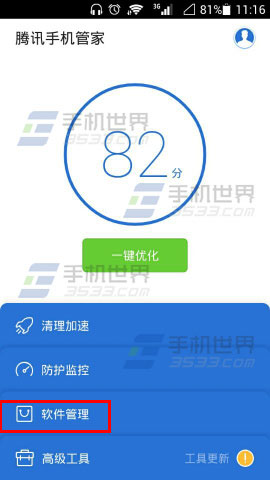 1)首先先先打开腾讯手机管家,进去之后点击【软件管理】。(如下图)