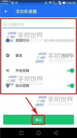 2)然后输入相关的提醒事项与方式,点击【确定】便完成啦~(如下图)