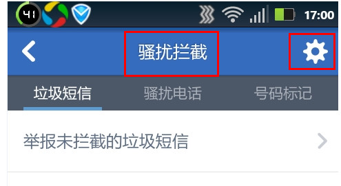 第三步:在“安全防护”页面中可以看到有个“骚扰拦截”功能,点击图标打开骚扰拦截功能(在“骚扰拦截”页面可以看到有垃圾短信、骚扰电话、号码标记,这些都是黑名单重点号码发来的短信和拨打的电话记录)