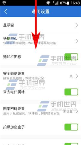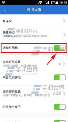 2)选择【通用设置】,把【通知栏图标】选项打开。