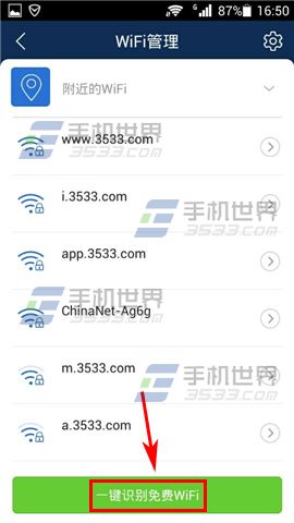 4)点击下方【附近的WIFI】,再点击【一键识别免费WIFI】即可