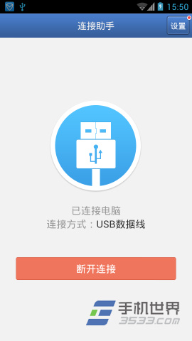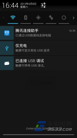 当你驱动安装好后可点击手机下拉框,点击腾讯连接助手,就可看到腾讯连接助手已经连接到了。如果你不需要连接到电脑了,也可以直接在手机上点击断开连接。