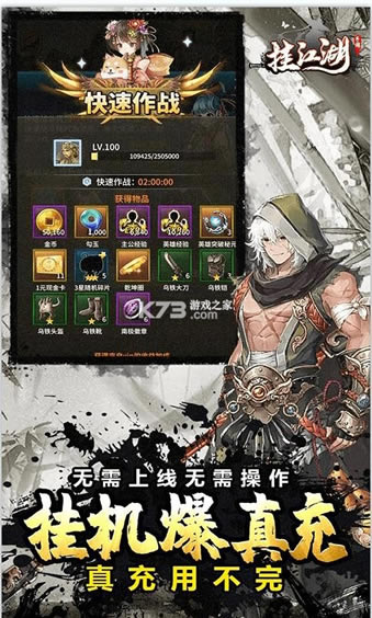 《挂江湖》华丽的特效对战,自由的搭配,轻松的放置,免费领取2千现金卡福利,全新的福利0氪的专属,免费万元真充,无限抽卡,福利不断,自由的搭配战斗,挂机爆真充福利不断领不停,送实物极品道具免费领。