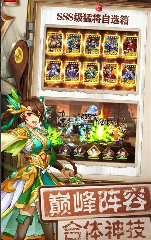 运筹帷幄,全新剧情供你挑战,丰富的武将自由招募,碎屏特效真是打击感,带领可爱Q版的三国英雄人物来与其他玩家展开战斗吧