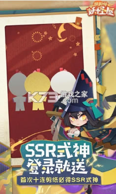 要说《阴阳师:妖怪屋》最为独特的,就是和风剪纸的趣萌画风了。在这里,战斗力拔群的大妖怪们都化身为了Q版剪纸形象的小妖怪;而室内外场景、植物、食物等同样都是精致的平面剪纸造型。