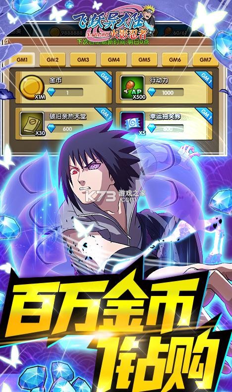《飞跃异大陆-送GM百抽》火之意志,格斗重燃!手游100%正统还原原著剧情,玩家可以任意扮演鸣人、佐助、我爱罗等忍者,体验酣畅淋漓的忍术格斗连打和全屏奥义大招,此外,还可以自由收集热门忍者、召唤通灵兽、体验忍者PK,一起在格斗中重新点燃火之意志!