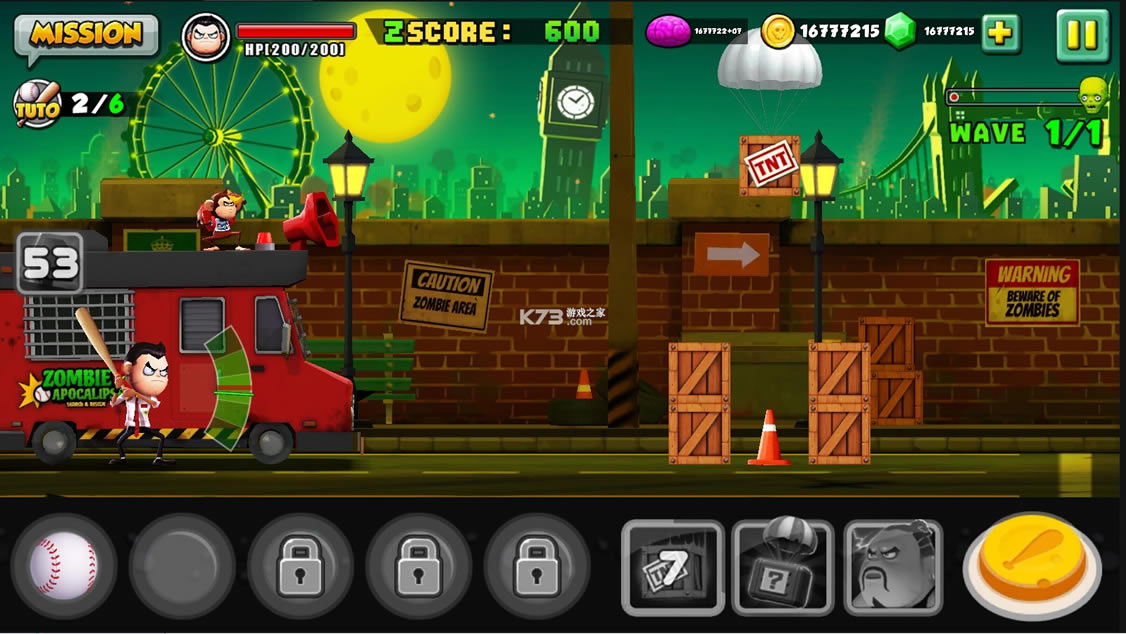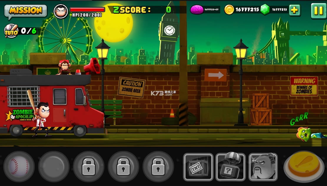 《僵尸vs重击手(Zombie VS Slugger)》是一款另类的僵尸射击游戏,玩家并不靠枪械,而是利用棒球来消灭僵尸,找准时间挥棒,将僵尸给击倒,使用不同的道具来进行辅助。