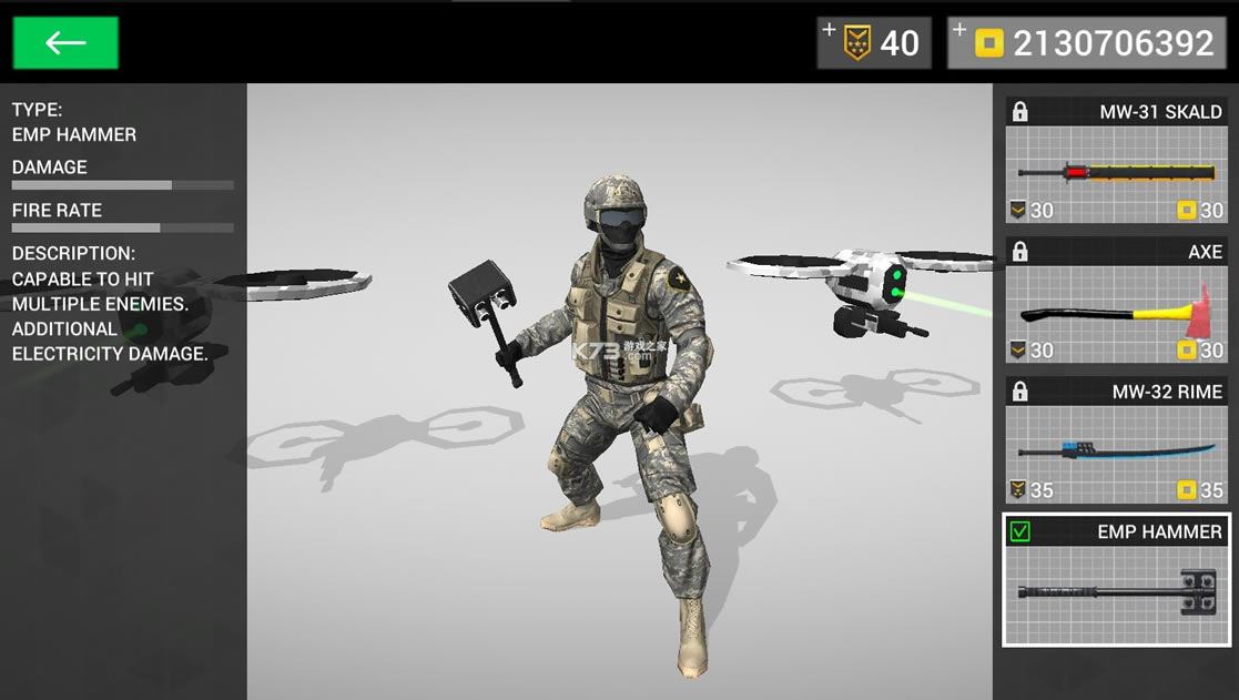游戏采用多种现代化的战争武器,在与怪物战斗时,可以使用防护盾、飞行器进行辅助攻击,怪物可能是空中射击,与也有地面攻击,它们数量很大,你需要在不停的进行躲避与射击,单人模式可以选择多种地图,利用地图特性进行风筝射击,多人可以利用防护罩进行全面防护!