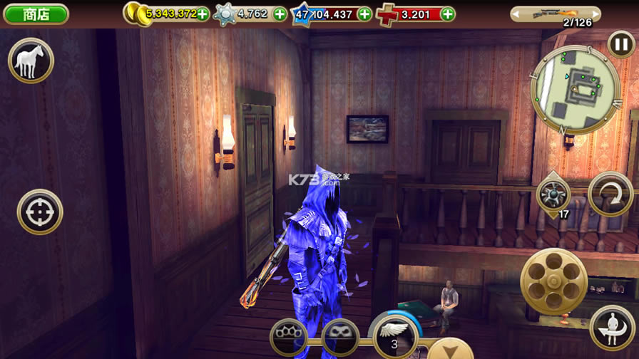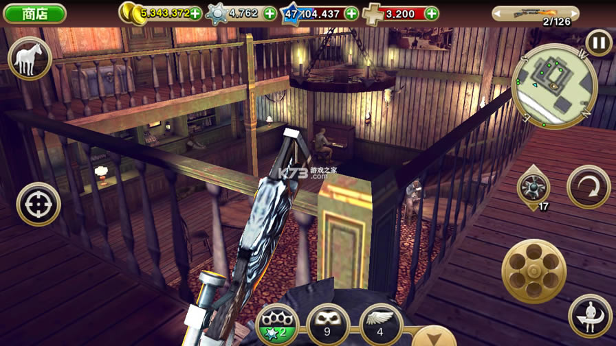 六发左轮与荒野大镖客非常类似,最出色的点要数它的射击操作玩法了!采用经典简易的双摇杆操作,并且摇杆位置不固定,玩家可以通过模糊触碰就完成移动射击,虽然会走火,但只要将武器切换成拳脚就可以啦!