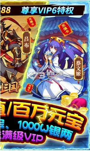 4、每日签到必送红色英雄、充值红包、红将10连、海量体力材料等