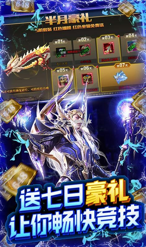 双重7日登录豪礼更有红色坐骑、红色翅膀、5阶套装免费领,现在创角立送VIP8,钻石*30000,绑钻*30000,金钥匙*10(十连寻宝),金币*200W,期待勇士的加入,带领着魔族大战中失去领导的人类重新夺回属于我们的世界。