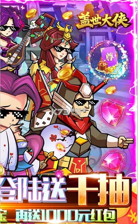《盖世大侠》0元即可领取大礼包,上线赠送超级多元宝,送千充福利,七日登录福利超多,上线就送神将,让你边玩边送,开启灵活的三国之战,根据不同的战况来调整阵容,开启冒险的旅途,找到更多的惊喜。