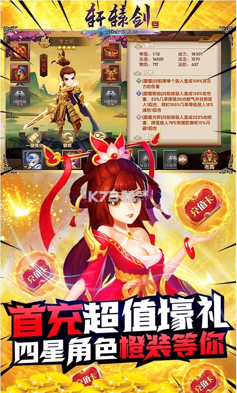 3.充值比例1:10000,首充即送极品四星陈靖仇,极品套装、超级法宝。