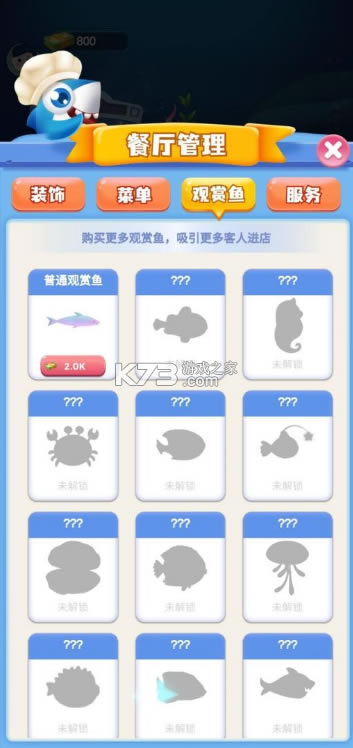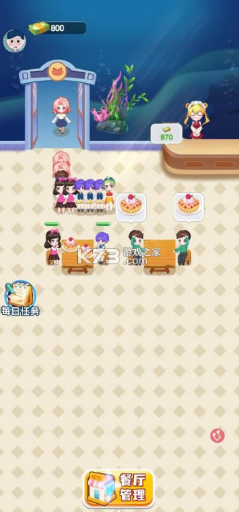 极具特色的海洋主题餐厅经营游戏,玩家作为餐厅老板经营海洋餐厅,召集员工推出各种海洋主题饮食,接收各个顾客订单赚取丰厚收益,升级餐厅解锁大量红包奖励