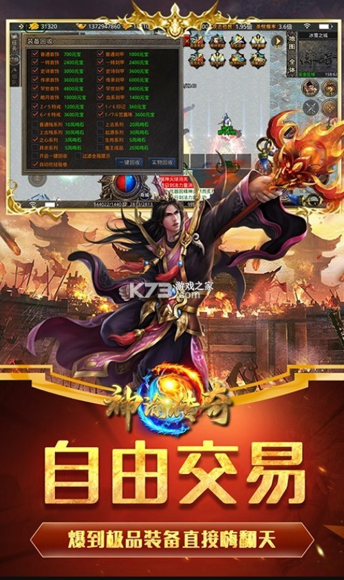 游戏中拥有各种精美酷炫的装备系统,直接在野外挂机战斗,设置战斗技能即可,随机爆取各种极品装备,根本不用 花一分钱,还有专门的装备回收系统,爆到极品的装备武器可以换取大量的元宝。多人一起屠城,享受那种即时战斗的游戏快感,召集昔日兄弟再续辉煌,游戏有着超高的爆率,玩家在BOSS狂怒的时候击杀BOSS还有一定的概率获得稀有的神戒和屠龙宝刀,玩家可以随时随意的与亿万兄弟一起感受最激情的热血对战!大量的传奇对战让玩家热血沸腾!带给玩家无限的激情,全新的神器更是免费获得!装备全靠打,大量的神技带给玩家无限的热血和激情,丰富的boss任务系统,超高的装备爆率,各种福利奖励拿到你手软,随时随地召集百万兄弟一起并肩作战,享受各种激 情战斗的快感。