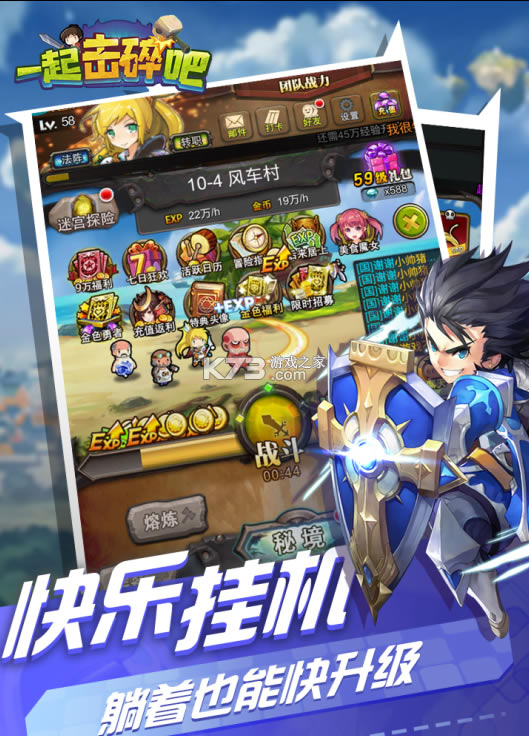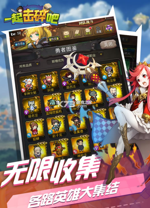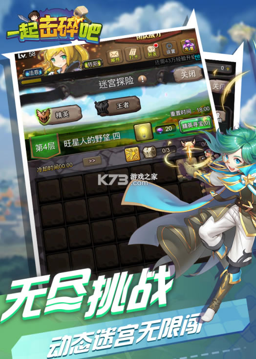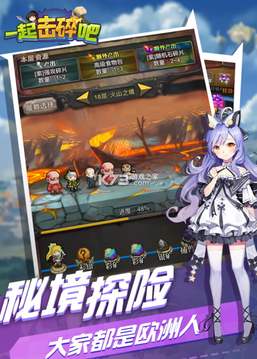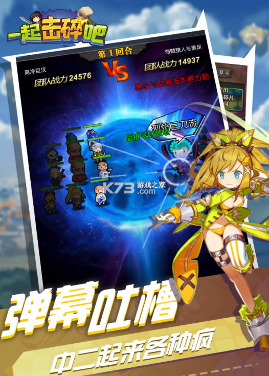 《一起击碎吧公测版》一款冒险挖矿类8bit风萌系挂机游戏。无限的挑战迷宫任性闯,秘境探索弹幕吐槽,体验不一样的快乐打击,,轻松挂机即可,玩法简单非常好上手,喜欢的朋友快来下载吧。