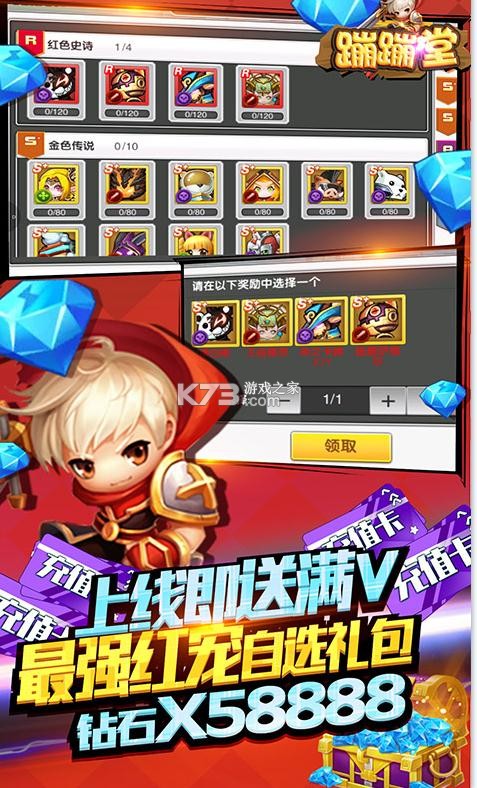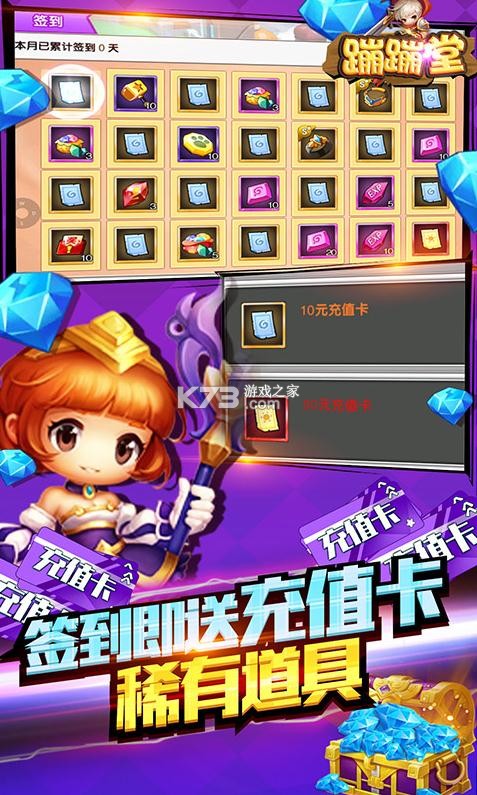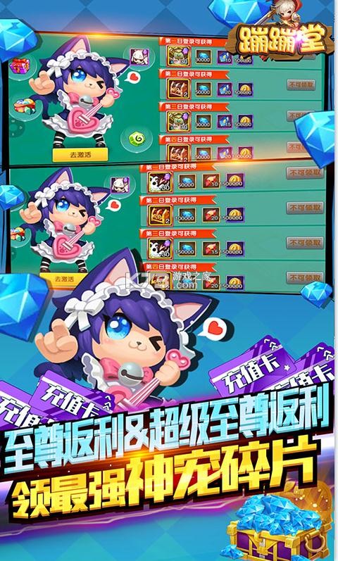 《蹦蹦堂》送真充福利,拥有多样的游戏战斗,玩法富有乐趣,秀出个人的战斗水准,充值卡自由的兑换,签到送充值福利超级多送满v福利,打造最强的萌宠,每天领取超多钻石,累积登录送海量的钻石,福利超多,送Q萌时装。