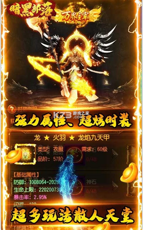 《暗黑部落》上线送刀刀切割的玩法,打怪轻松无任何的压力,送日常充值返利,送钻石福利超级多,登录送海量道具和超级多福利,超高爆率自动挂机,刀刀光柱,巅峰竞技经典重现,超多玩法散人们的天堂。
