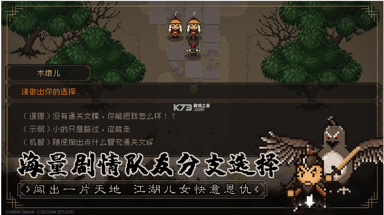 SFC、MD时代的Q版像素风,结合宋代水墨画进行的场景设计,一段纯正的中国传统武侠故事,带大家重温90年代经典RPG的岁月。