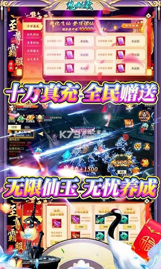 ★30级开启霸服之路,升级境界赠送10万充值,伴随仙生,直取大道!