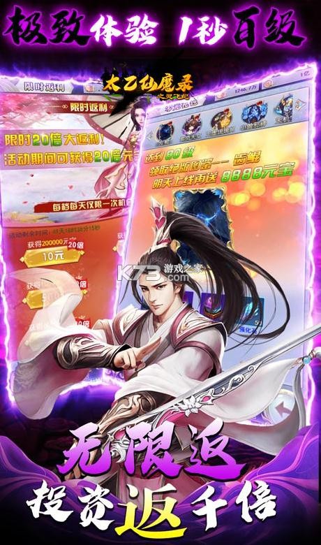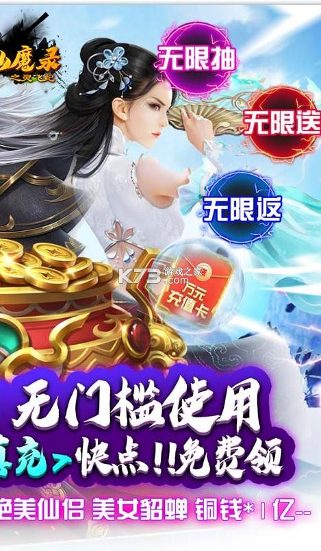 《太乙仙魔录之灵飞纪-送万元真充》是一款唯美玄幻仙侠手游,上线壕送无门槛10000真充,全民BOSS每日爆万元真充,每日签到永久无上限送真充!超变态无敌商店火力全开,1元礼包助力快速转生,至尊鸿蒙神装、真充卡限时超低价抢购,快人一步,三界由你主宰!