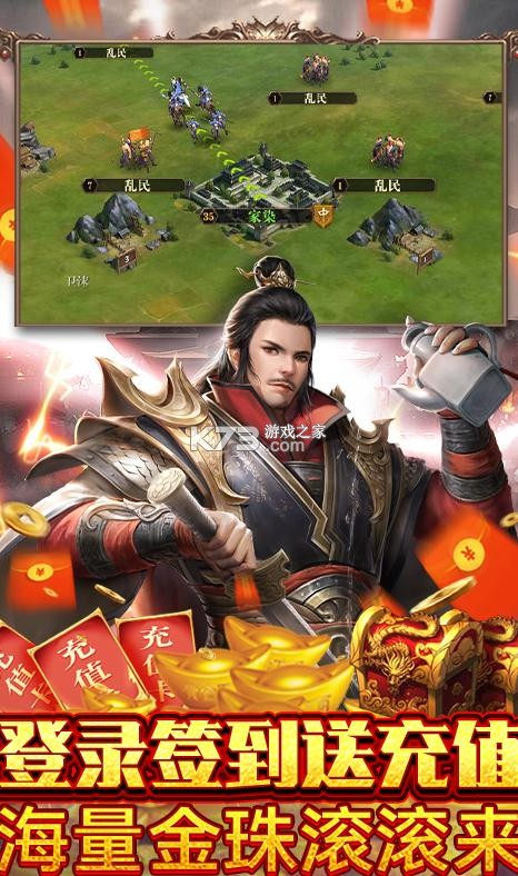 福利版本《天子令(0氪赚万充)》是一款集RTS与SLG玩法于一身的创新战争策略手游,上线送贵族10、千元福利充值卡,升级签到更有万元充值卡领取,每日免费商城续航,自由行军征战,谋略千里之外,史诗级画风展现,九州烽烟起,战火重燃,与天下名将共赴沙场,开启传奇之路,权谋致胜,多种搭配,打造全能军队,主宰九州,重现九州荣耀。