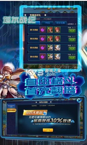 《塔尔战纪》自由格斗自创技能无限的连击,送首充翻倍,格斗技和枪械的乱入,开启诡异的战斗,保护属于自己的城堡,每日热卖低价出售,多充多送,快速的取胜,诡异的战斗魅力无限,保护属于自己的城堡。