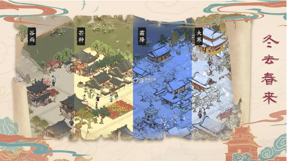 游戏经营玩法的基本功十足,玩家能想象到的这里都有,包括自由摆放建筑和铺设道路,大地图缩放和建筑旋转摆放,规划资源生产线与工人行动线路,多种居民行为与互动,丰富的历史名人卡牌与养成,特色店铺和食肆的经营,甚至连昼夜,天气和四季对产物和环境的影响这些细节也都有。