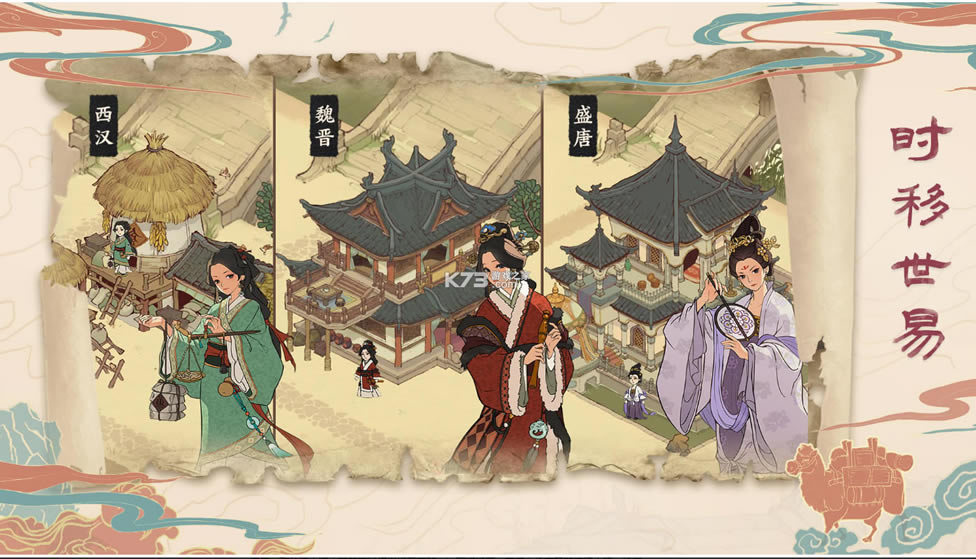 这款游戏最大特色点就是拥有“时间“的概念,游戏并非定格在某一个时期,而是随着游戏进行不断推动历史发展,从西汉到大唐横跨千年,玩家将参与每一个时期里发生在丝绸之路上的历史事件,并做出决策来使自己经营的小镇可以持续繁荣发展。