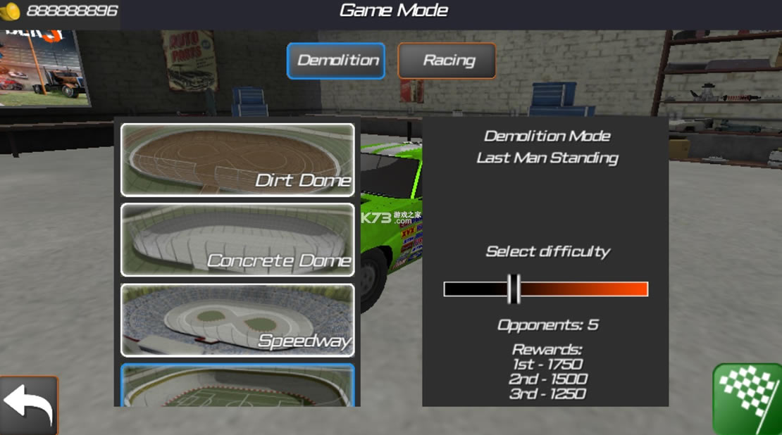 很适合发泄的游戏,刚进去的时候是小破车,随着比赛获得的金币,玩家可以购买各种赛车,买车之前,玩家还能试驾,驾驶汽车到公路上尽情的撞击破坏吧,反正又不花钱!