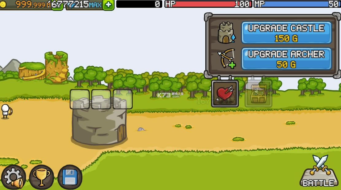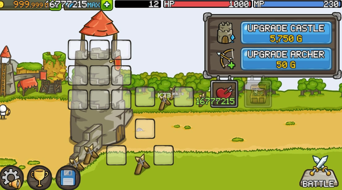 随着金币的增多,玩家们可以购买更多的英雄及武器。塔楼上的弓箭手也会不断升级,越来越强大的攻击力将保护城堡的平安。