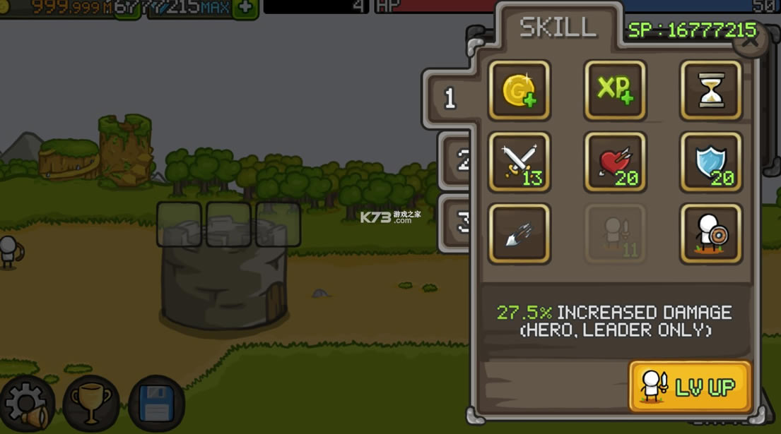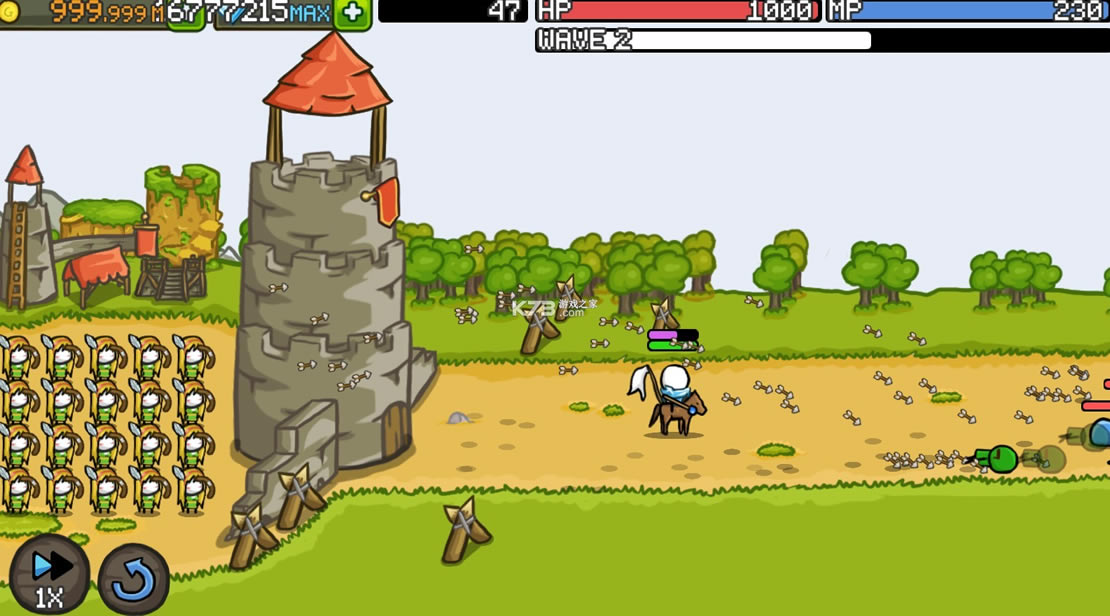 随着金币的增多,玩家们可以购买更多的英雄及武器。塔楼上的弓箭手也会不断升级,越来越强大的攻击力将保护城堡的平安。