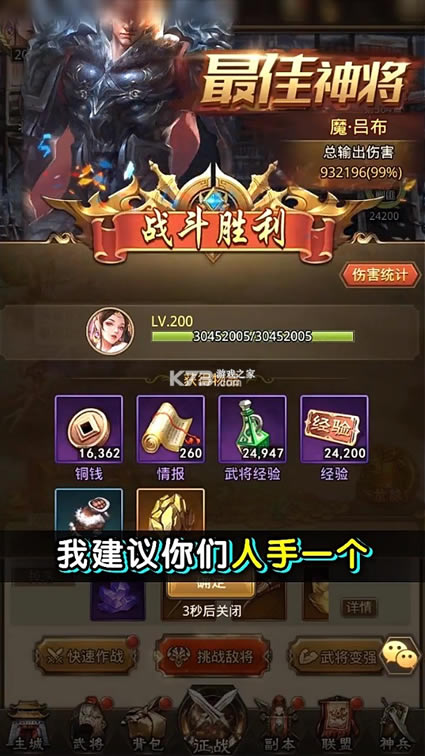 魔曹操也是游戏里面超强的一位魔武将,魔武将是魔阵容中的核心武将,魔曹操可以为全体魔武将增加大量的攻击,而且场上每有一个魔武将都可以为魔曹操增加大量的攻击,所以在魔阵容中魔曹操是必不可以的,不仅仅可以为己方武将增加大量的攻击,魔曹操本身的输出能力也是超强的,可以非常轻松完成收割残局,是大家想玩魔阵容必练的武将。