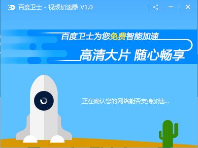 第一次打开工具后,会确认您的网络是否支持加速,如果支持,以后每次用浏览器看视频时,视频加速器会自动为您启动加速并通知您,无需主动打开。百度卫士视频加速器已支持市面上主流的浏览器,智能自动为视频加速,欢迎推荐给广大小伙伴~
