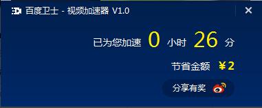 当使用完毕,关闭视频,退出浏览器之后,视频加速器会自动计算本次加速时长和对应节省的金额哟,很不错吧!