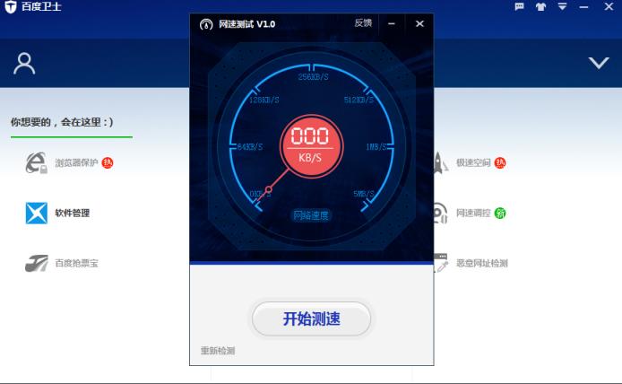 不过由于百度卫士界面是简约风格,很多的功能要点击查看才能发现,网速测试功能比较隐蔽,且加之属于新功能,因此很多朋友还是不是很了解。下面小编为大家详细介绍下百度卫士测试电脑网速方法。
