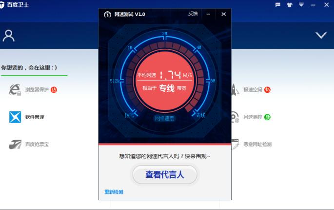 而最近更新的百度卫士3.0版本中新增了网速测试功能,在近日体验了以下,测试效果还不错哟。
