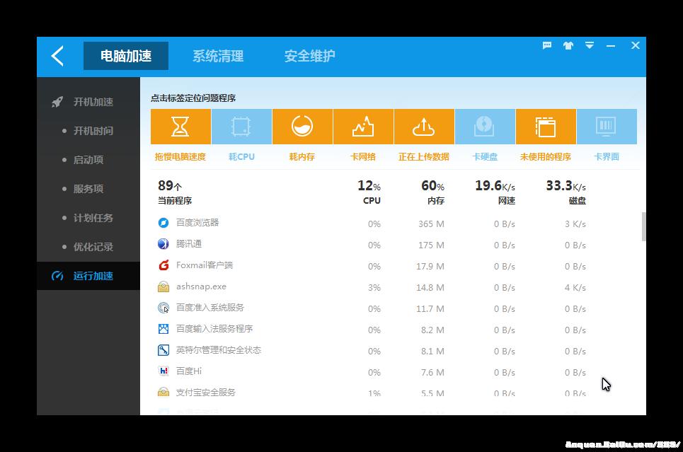 百度卫士3.0对于运行加速这块做了比较大的改动: