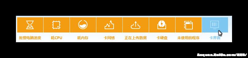 对于问题程序定位标签,百度卫士3.0个采用了横向布局,并对正常正常与非正常用了黄色与蓝色做了简单区分,更对相应问题的展示LOGO做了重绘,系统问题展示更加直观