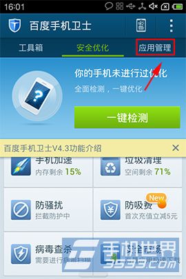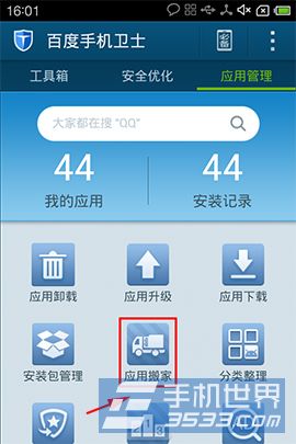 1)首先打开百度手机卫士,点击应用管理,再点击应用搬家;