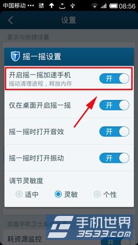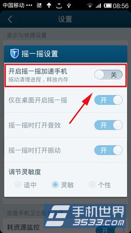 2)最后把开启摇一摇加速手机关闭,同时也可以只关闭摇一摇时打开的音效。